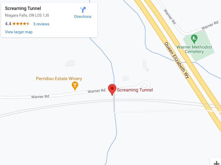 You can find The Screaming Tunnel at: Warner Rd, Niagara-on-the-Lake, ON L0S 1J0