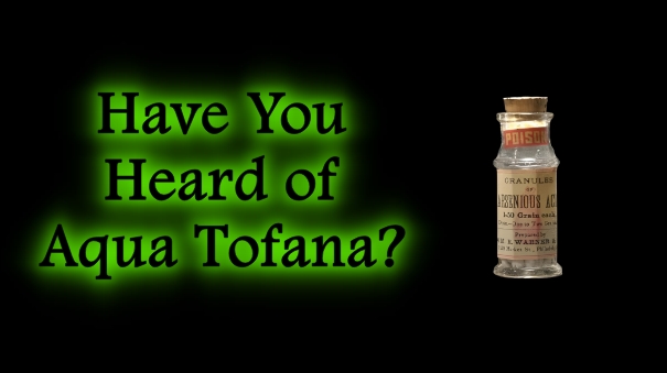 Aqua Tofana (also known as Acqua Toffana, Acquetta Perugina, and Aqua Tufania and Manna di San Nicola) was a strong poison that was reputedly widely used in Naples, Perugia, and Rome, Italy. During the early 17th century Giulia Tofana, or Tofania, a woman from Palermo, made a good business for over twenty years selling her large production (she employed several helpers) of Aqua Tofana to would-be widows.